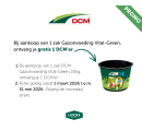 Bij aankoop van 1 zak gazonvoeding Vital-Green 20 KG, ontvang je 1 DCM' er gratis.
