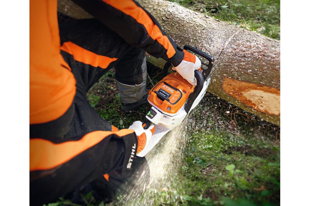 De eerste accukettingzaag van STIHL voor professioneel gebruik. Het hoge vermogen en de drie selecteerbare bedrijfsmodi leveren optimale prestaties, ongeacht de taak. Met de STIHL zaagketting .325" RS Pro en het zaagblad Light 04 voor uitzonderlijkezaagprestaties. Eenvoudige en comfortabele bediening dankzij de intuïtieve bedrijfs- en meldingscockpit met led-display en de bedieningshandgreep met potentiometerfunctie voor een traploze toerentalregeling. STIHL antivibratiesysteem, geïntegreerde koelluchtfilter en standaard oliesensor met led-indicator voor laag oliepeil. Behuizing al compatibel met STIHL Smart Connector 2 A.